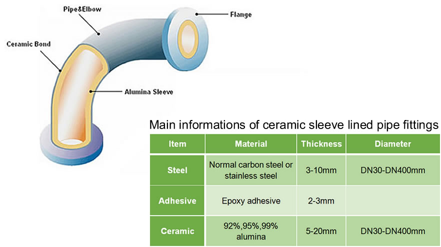 Ceramic Liner Composite pipe is a high technology production technology-self-fuel high temperature clutch synthesis method. The tube is composed of corundum ceramics, transition layer and steel three layers respectively from inside to outside, the ceramic layer is formed dense corundum porcelain (Al2O3) at high temperature above 2,200 ℃, and the steel pipe is formed firmly by the transition layer.
